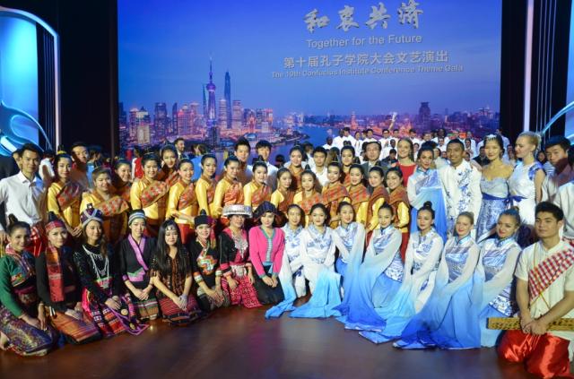 图:第十届孔子学院大会文艺演出我校学生合影