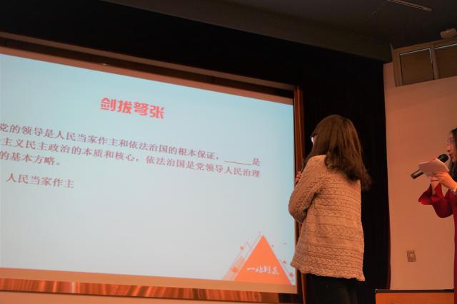 为积极学习宣传贯彻党的十九大精神,管理学院在旭日楼400举行第五届党情国情“一站到底”知识竞赛。活动主题为“响应十九大号召,不忘初心跟党走”,以知识竞赛的创新形式加强学生对党情、党史、国情、时政热点以及十九大报告内容的学习和理解。学院学生党支部书记、辅导员、学生党员及积极分子参加活动。