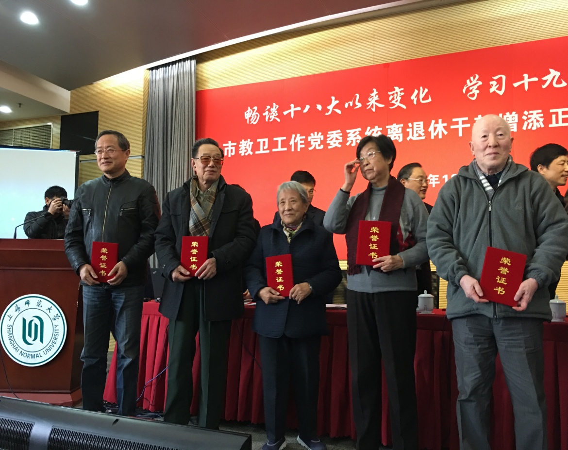 12月13日,上海市教卫工作党委系统离退休干部增添正能量推进会在上海师范大学召开,我校在会上获多项荣誉。