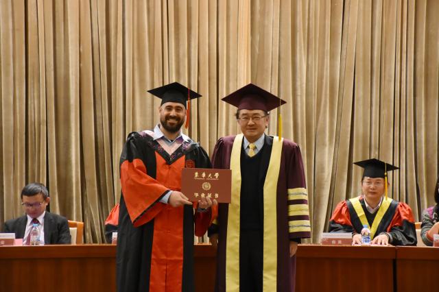 1月10日,我校2018届秋季学期外国留学生毕业典礼在延安路校区举行,81名外国留学生毕业作别母校,开启新的人生征程。来自世界各地的毕业生亲属、师生代表共同参加了此次典礼。校长蒋昌俊出席典礼,发表热情洋溢的讲话并为留学生颁发毕业证书。校办、研究生部、发展联络处、国际文化交流学院等部门和学院负责人参加典礼。